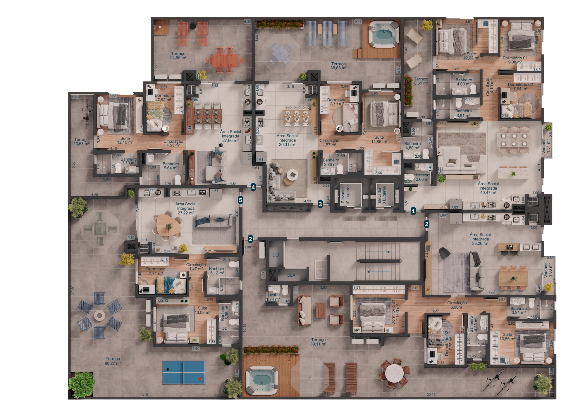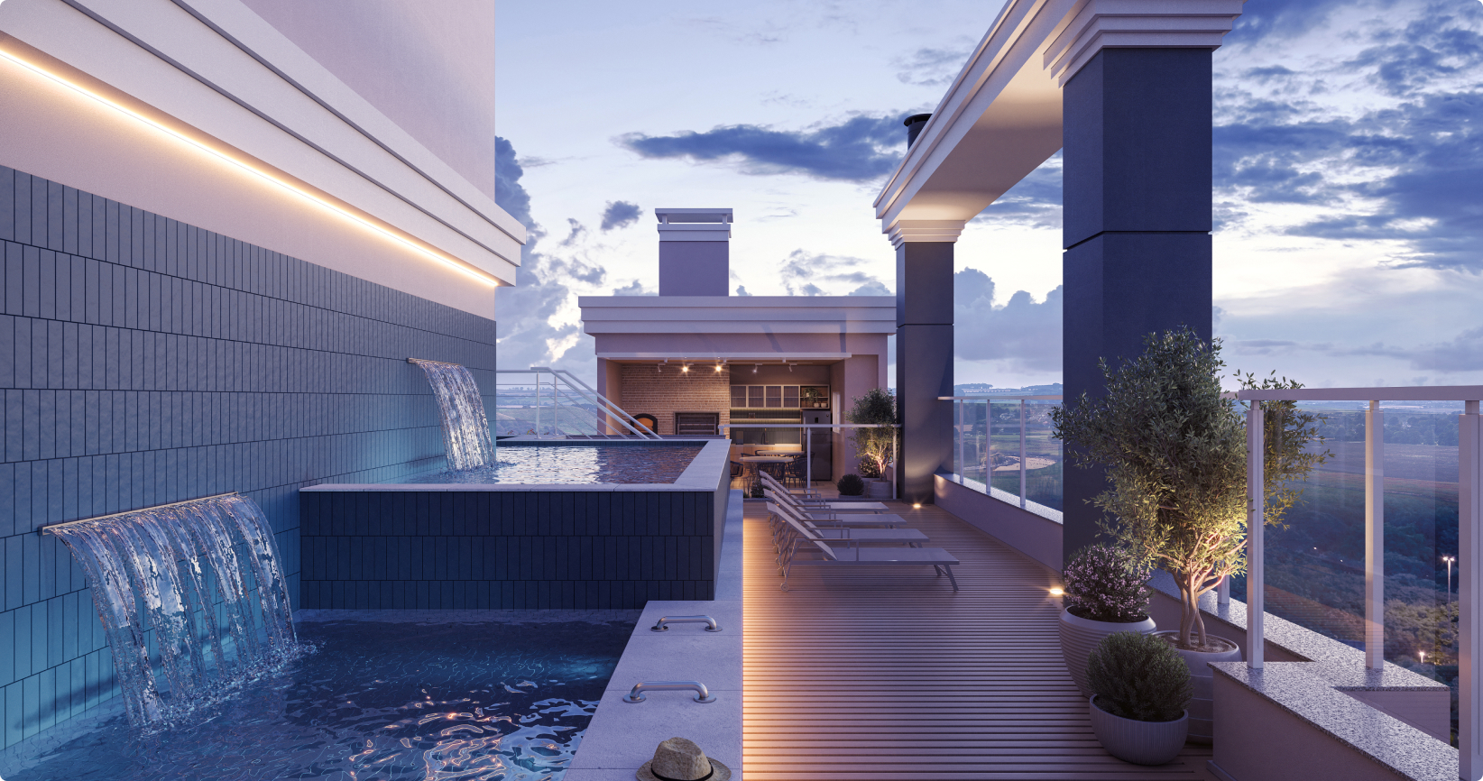 Apartamentos com terraço privativo e infraestrutura para hidromassagem/jacuzzi